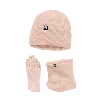 Wander Agio Conjunto de jacquard de Invierno para mujer Gorros Cuello Polaina Guantes de redecilla-Accesorio de lana de 3 piezas